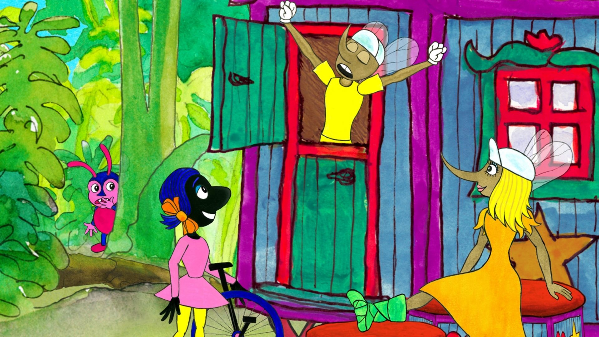 Een bonte karavaan trekt door het bos. Het is het insectencircus. Ook Miranda de vlo en Mini het kevertje reizen mee. Mini begaat een stommiteit waar hij zich zo voor schaamt dat hij vlucht. Maar dan valt hij in handen van een roversbende.
